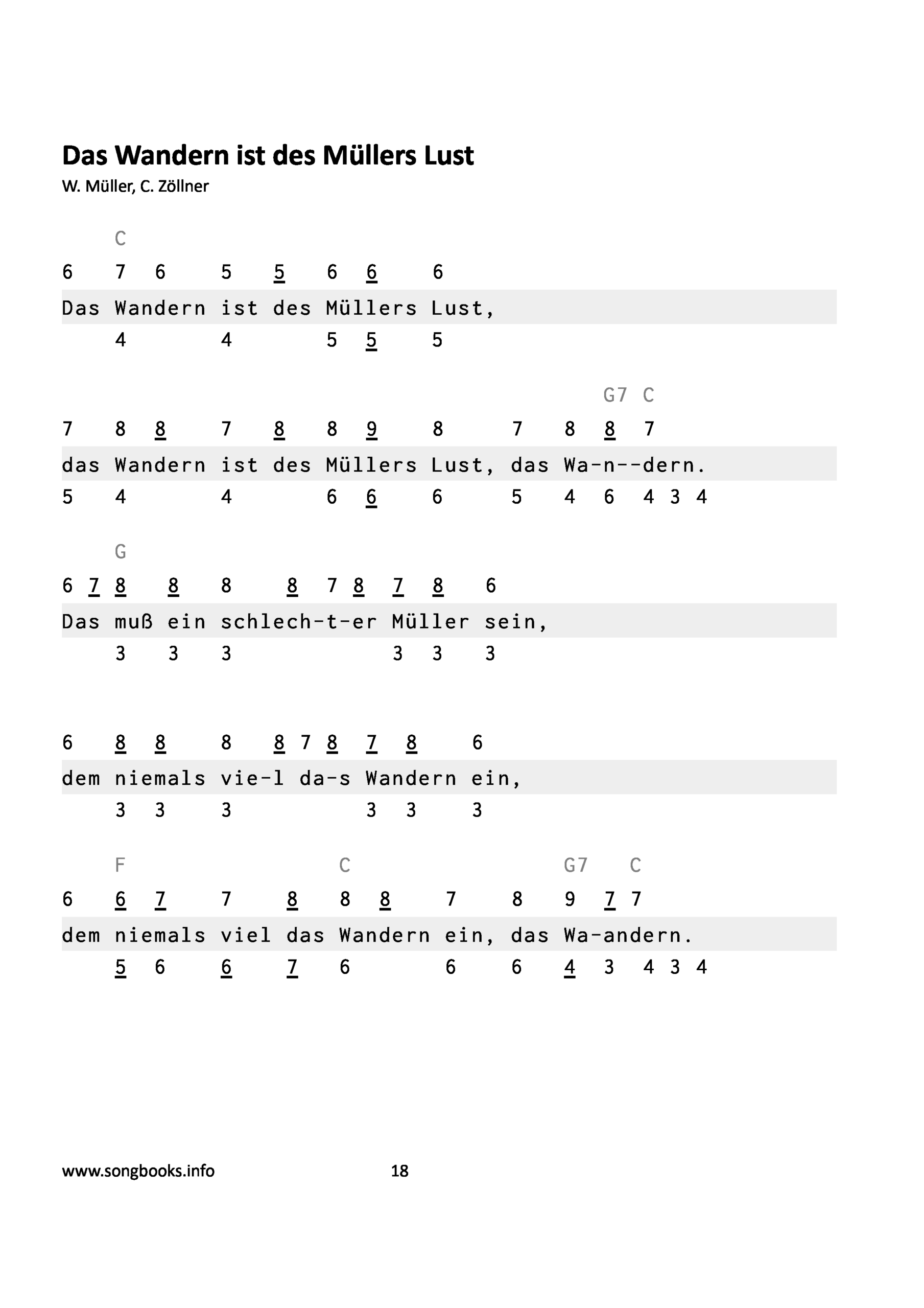 Die Melodien wurden einfachst mit Zahlen / Symbolen aufbereitet, die Gesangsmelodie bestimmt die Rhythmik. Mit Akkordangaben für Begleitinstrumente.