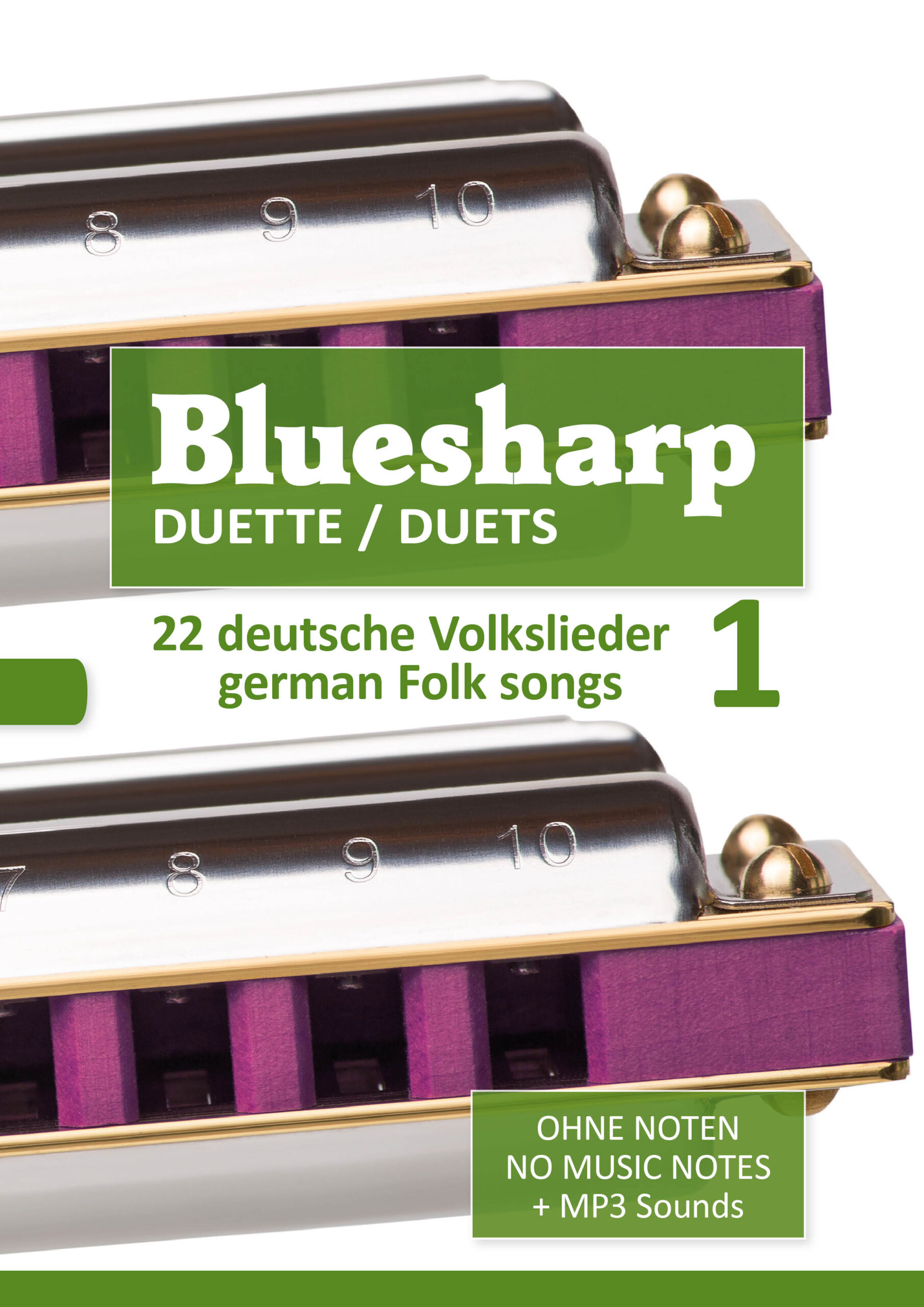 Liederbuch (in deutsch und english) mit 22 Duetten von bekannten und beliebten deutschen Volksliedern, Band 1 – für die „Bluesharp“ (diatonische Mundharmonika in „Richter“-Stimmung) – für zwei SpielerInnen.